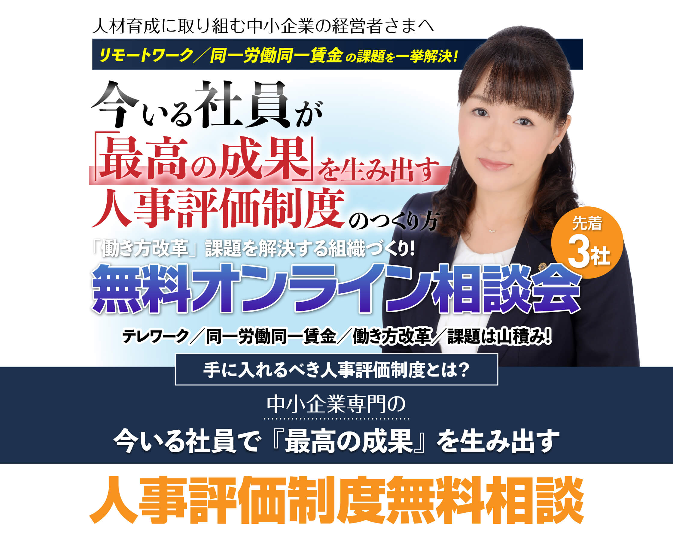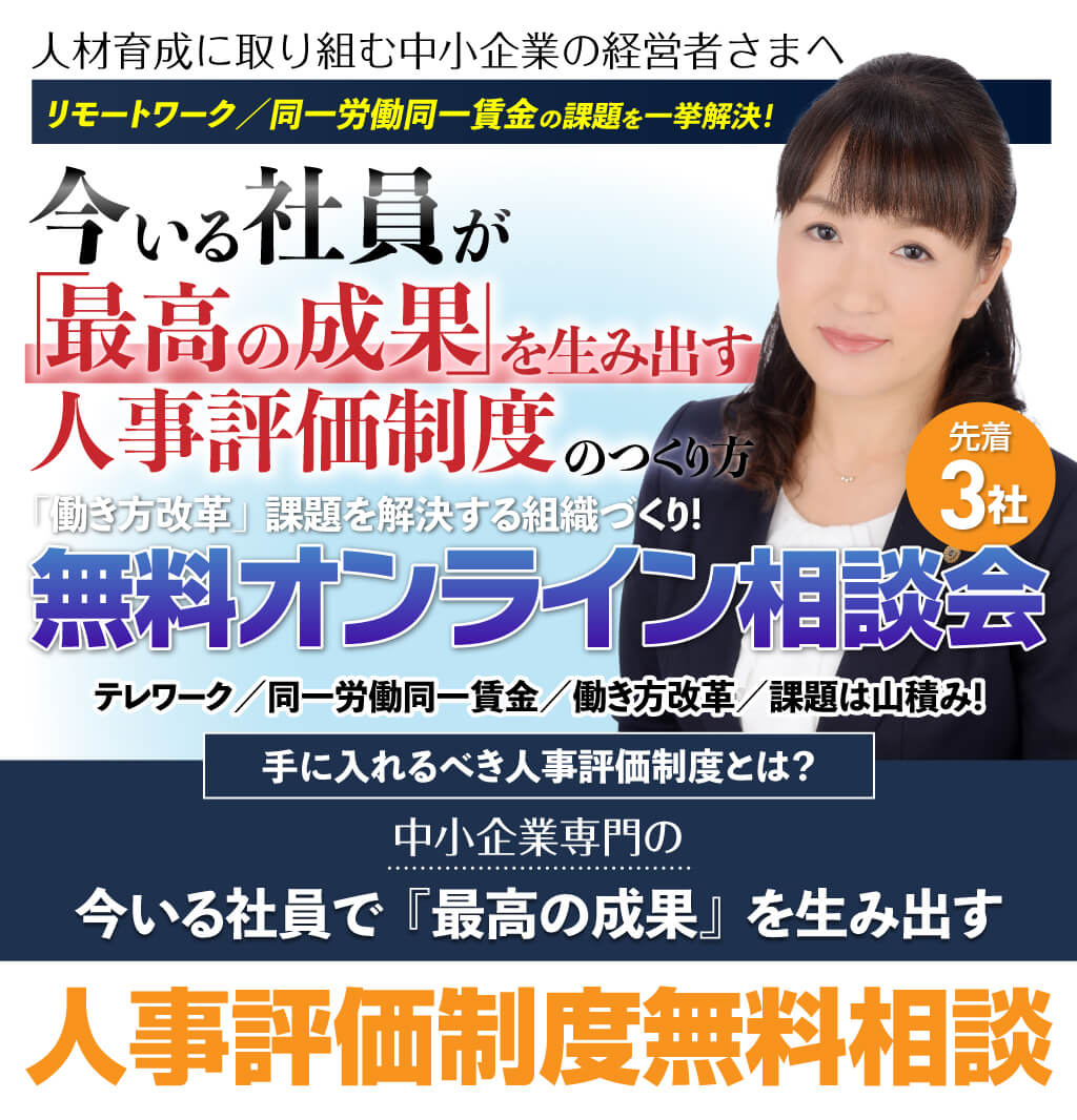 敷居の低い無料相談会をオンラインで開催することにより、評価制度に関するお悩みだけでなく日頃なかなか確認できなかった疑問点をお持ちの経営者様が気軽にご相談していただければ、少しでもお役に立てるのではないかと思い企画いたしました。